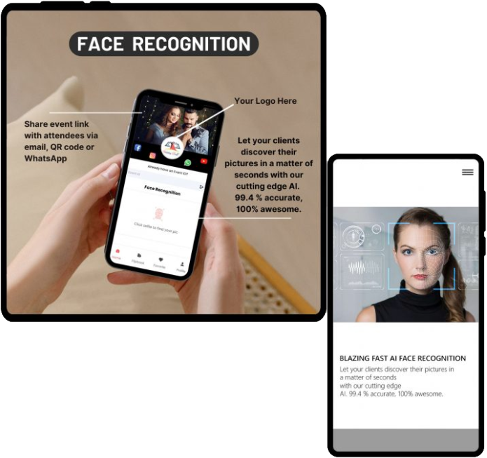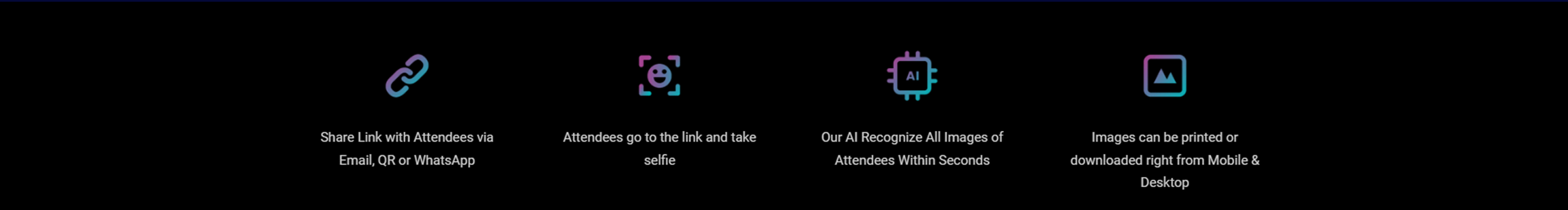 Share Event Link or QR Code with attendees to discover their pictures in matter of seconds.